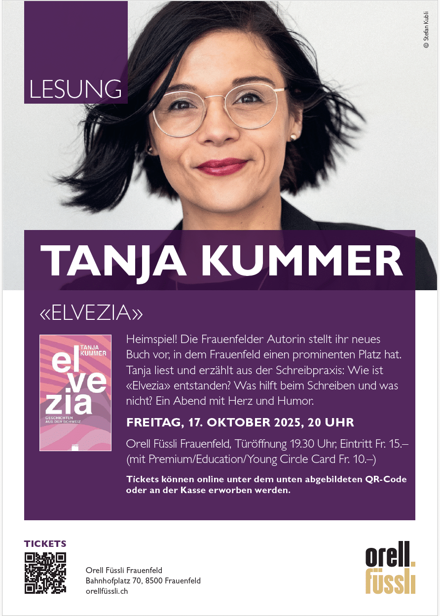 Am 17. Oktober bei Orell Füssli am Bahnhof Frauenfeld. Eine meiner Geschichten erzählt „von“ Frauenfeld oder besser, warum ich mich mit Frauenfeld verwandt fühle und die lese ich natürli vor. Ich freue mich auf Begegnungen mit alten und neuen Bekannten! 🙂